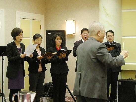 ▲사모들이 특송으로 섬겼다. 지휘는 뉴욕동노회 김천 목사가 섬겼다.