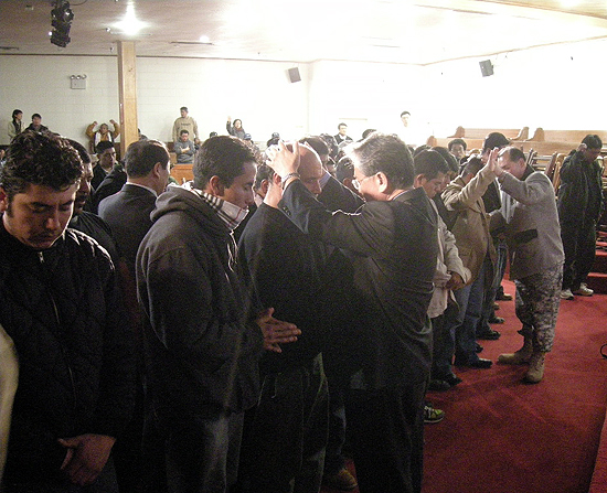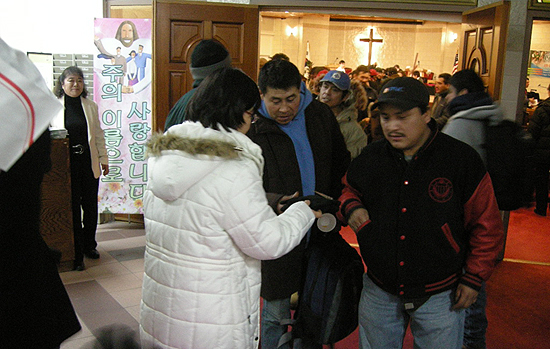 김희복 목사는 "교회 성도들, 노던 블러버드에 나와 일자리를 찾는 일용직 히스패닉들, 잭슨하이츠,우드사이드 지역에 있는 히스패닉들을 밴(Van) 4대로 픽업해왔다"며 "10년 전부터 길거리에 있는 히스패닉들을 초대해 복음 집회를 하고 싶었다. 그것을 놓고 기도하던 중 이번에 나눔과기쁨과 협력하게 됐다"고 말했다.