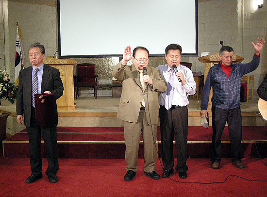 | ▲대뉴욕지구한인교회협의회 회장 김원기 목사가 축도를 하고 있다. | |
