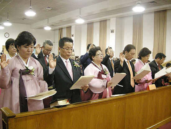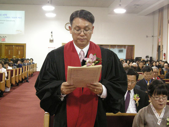뉴욕동양제일교회(담임 빈상석 목사)가 담임목사 위임식 및 장로임직식을 27일 오후 5시 개최했다. 이날 설교는 서정운 목사(장신대 전임 총장, LA 미주장신대 전임 학장)가 전했다. 서 목사는 "빈상석 목사는 소박하고 순수하며 열정이 있다. 이런 목사를 모시는 교회는 복 있는 교회다"며 "목사는 가르치고 설교한 대로 살 의무와 책임이 있다. 교인의 모범이 되어 섬김의 자리에서 교인들을 인도하는 목자의 거룩한 의무와 책임을 감당할 수 있기를 바란다"고 전했다. 임직자들에게 서 목사는 "그리스도와 그리스도의 몸 된 교회에 충성하고 모든 교인이 본이 되고 세상에서는 그리스도의 증인이 되기를 바란다"고 말했다. 이번 장로 임직자는 6명으로 강성국, 김요한, 신철승, 유신희, 조경렬, 조형구 성도가 장로로 임직됐다.