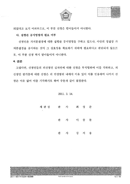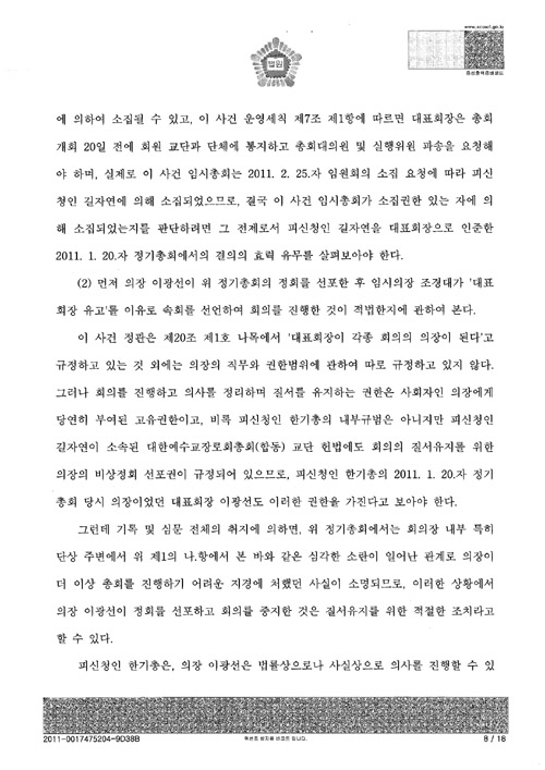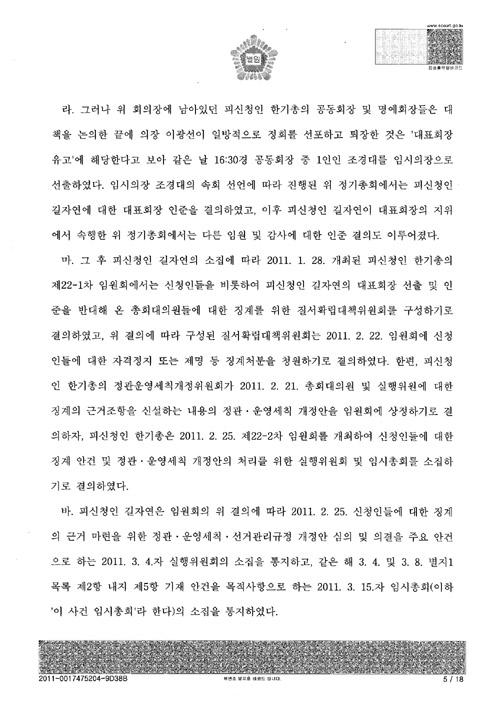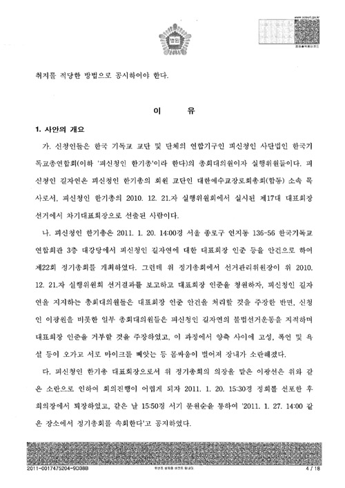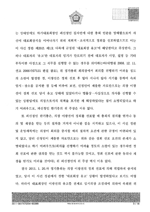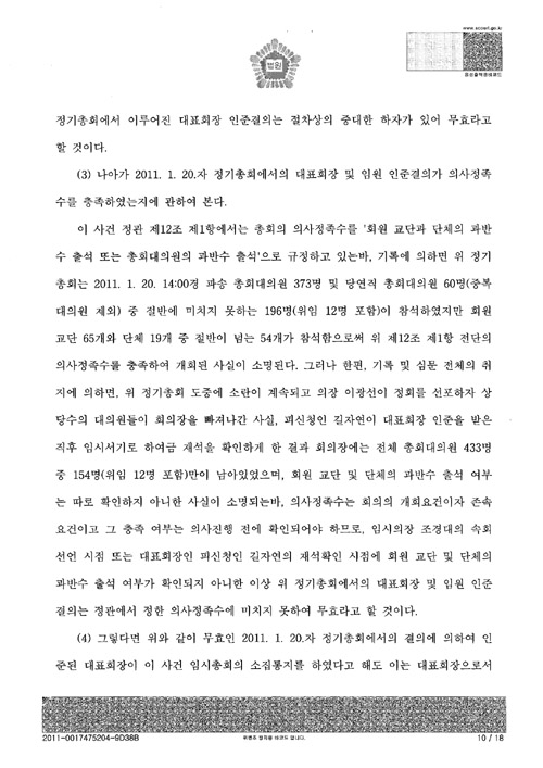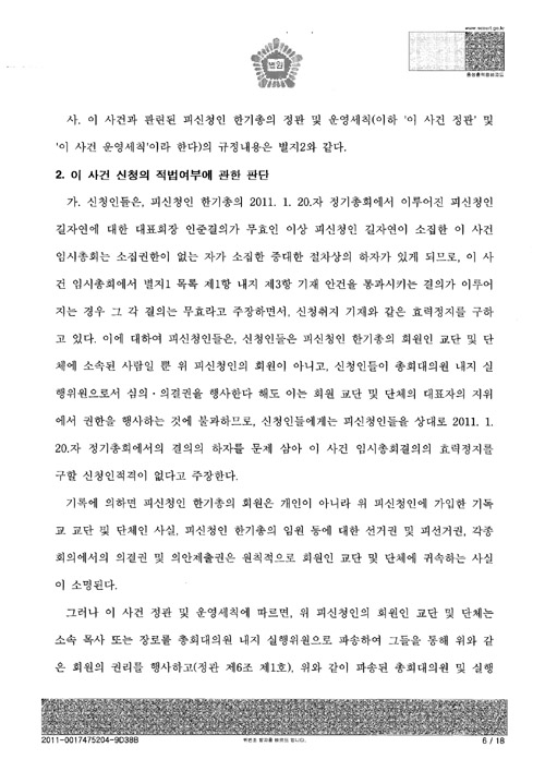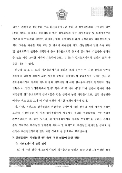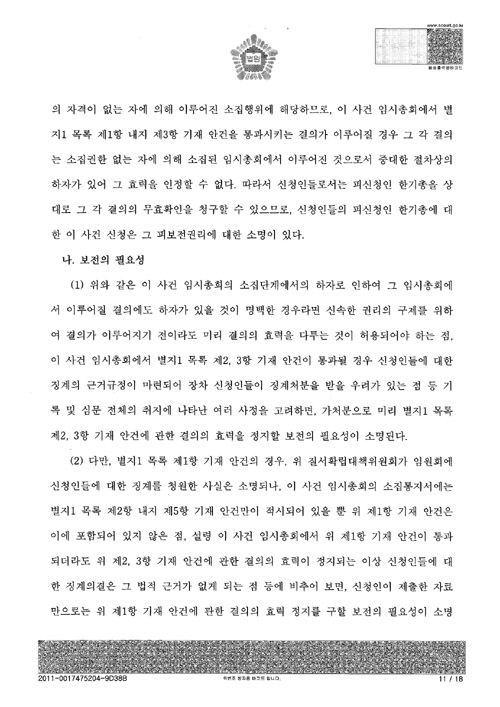 [서울중앙지법의 ‘총회개최금지가처분’ 판결문 전문]