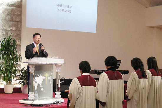 | ▲헌금기도하는 이병을 장로(뉴욕낙원장로교회) | |
