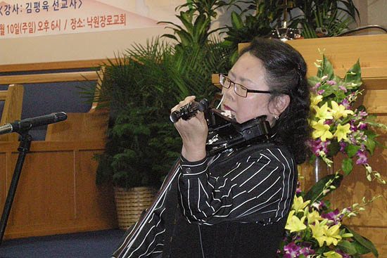 ▲정명자 권사가 바이올린 연주를 선보였다.