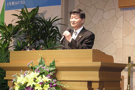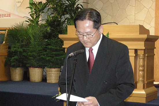 ▲김용익 목사(대뉴욕지구한인목사회 회장)가 격려사를 전했다.