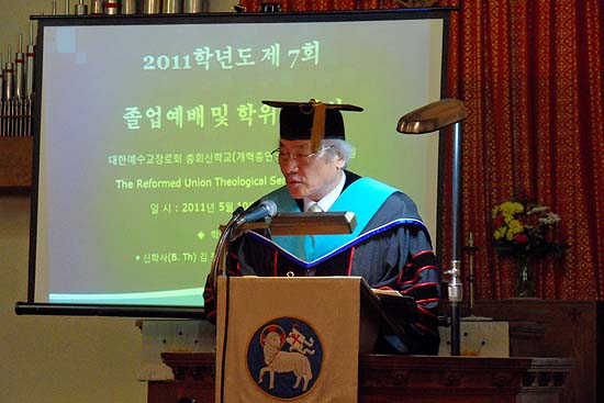 대한예수교장로회 총회신학교(개혁총연) 신학대학(원) 제7회 졸업예배 및 학위수여식이 10일 오후 7시 개최됐다. 올해 졸업자는 신학사(B.Th) 임채민, 김철수, 김현미, 정양숙 4명이다. 이중 임채민, 김현미 졸업생이 모범상을, 김철수, 정양숙 졸업생이 봉사상을 수상했다.