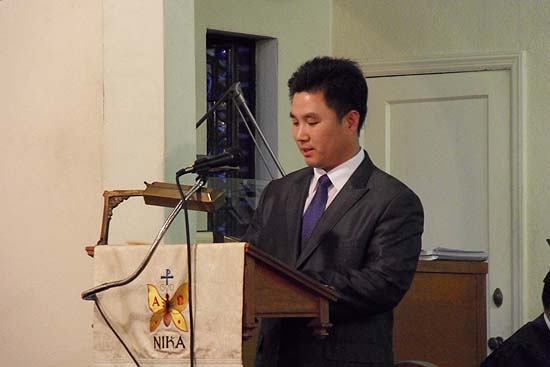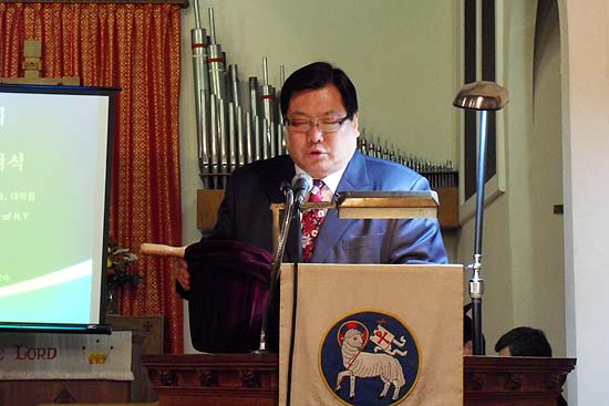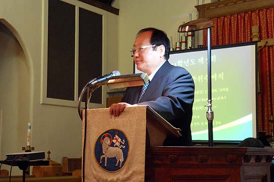 ▲김원기 목사(대뉴욕지구한인교회협의회 회장)가 축사했다.