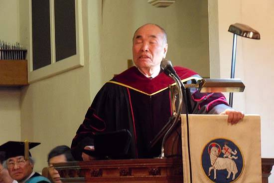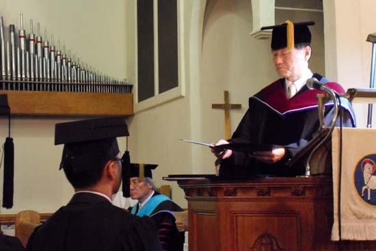 ▲김용익 박사(학장)가 학위 및 졸업증을 수여했다.