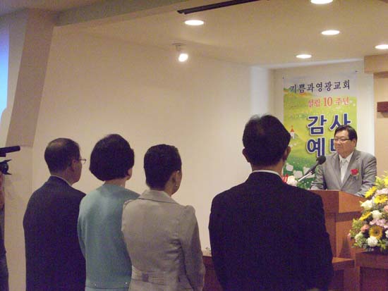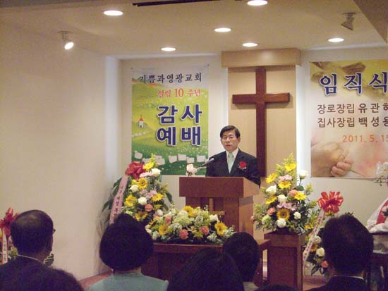 기쁨과영광교회(담임 전희수 목사) 설립 10주년 기념 감사예배 및 임직식이 15일 오후 5시 개최됐다.