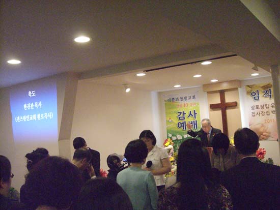 이날 감사예배는 전희수 목사의 사회로 캐터린 권 목사가 대표기도, 기쁨과영광교회 남성중창단. 최광남 장로(퀸즈한인교회)가 특별찬양, 이규섭 목사(퀸즈한인교회 담임)가 말씀, 캐터린 권 목사가 헌금특송, 박진하 목사(미동부국제기아대책기구 사무총장)가 헌금 기도했다.