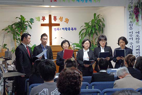 | ▲14일 저녁은 뉴욕겟세마네교회 전도사들이 특송했다. 15일은 뉴욕겟세마네교회의 신학생 10명 중 40대 이하 신학생이 특송을 맡기로 했다. | |