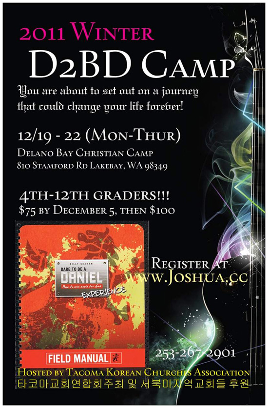 어느덧 4회째를 맞으며 청소년 영성을 변화시키는 영어 캠프로 자리매김한 D2BD CAMP가 오는 12월 19일(월)부터 22일(목)까지 4학년에서 12학년을 대상으로 델라노배이 크리스천 캠프에서 개최된다.
