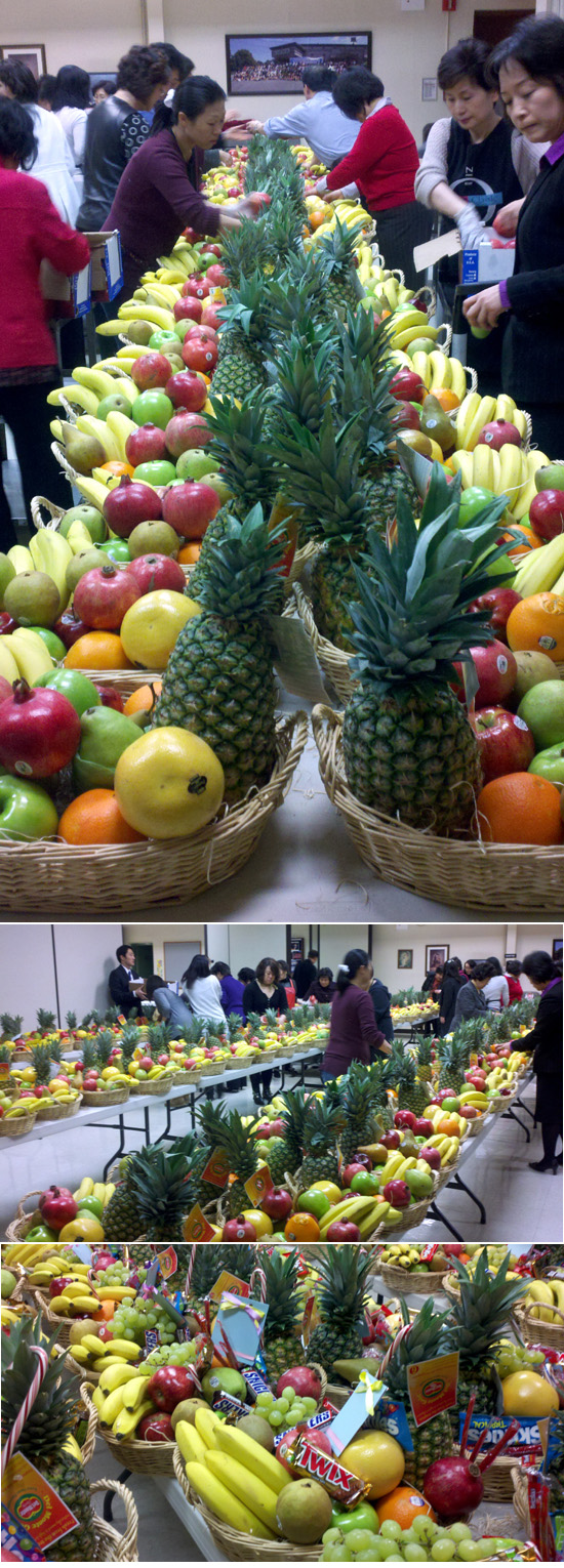 퀸즈장로교회가 15일 성도들이 참여한 가운데 주변 관공서와 소외된 이웃들에게 전달할 사랑의 바구니 150개를 완성했다.