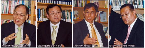 2012년 새해가 밝았다. 다사다난했던 2011년을 뒤로 하고, 올해를 준비하는 목회자들의 발걸음도 한창 분주할 때다. 2012년 목회자들이 붙들어야 할 목회의 가장 중요한 주제가 무엇인지 고민하며 남가주 지도자들이자 편집고문인 박희민 목사, 민종기 목사, 고승희 목사, 정우성 목사를 초청해 <2012년 한인 이민교회를 말한다”를 주제로 특별대담을 했다. 주제는 <한인교회의 영적 리더십과 권위 회복>이었으며 권위 실추 문제와 목회 환경의 변화에 대한 담론이 오고 갔다. 대담에 참여한 목회자들은 교회의 권위 실추 문제가 목회자로부터 비롯된다는 점에서 공통된 의견을 보였으며 이를 극복하기 위해 교회의 에너지를 선교와 전도는 물론 대사회적 영향력 회복에 투자해야 한다는 데에 입을 모았다. 대담은 2시간에 걸쳐 진행됐다.
