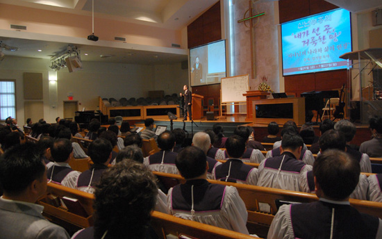 엄기영 목사가 강의를 시작하며 던진 첫 마디는 “21세기 세계의 중심 미국 뉴욕에 여러분을 여기 있게 하신 뜻이 무엇인가 생각해야 한다”였다. 엄기영 목사는 그리스도인들의 삶에는 결코 우연이 없다고 생각한다며 “참새 한 마리도 허락지 않으시면 떨어지지 않는다. 반드시 필연적인 인도하심이 있을 것”이라고 강조했다. 엄기영 목사는 마태복음에 기록된 예수님의 말씀 중 하나님 나라를 비유로 설명하신 부분을 주목했다. 엄기영 목사는 “여러분은 이 하나님 나라를 알고 계시는가. 이 부분에 있어서 잘 대답하지 못하는 것이 우리 신앙의 굉장한 맹점”이라며 강의를 이어나갔다.
