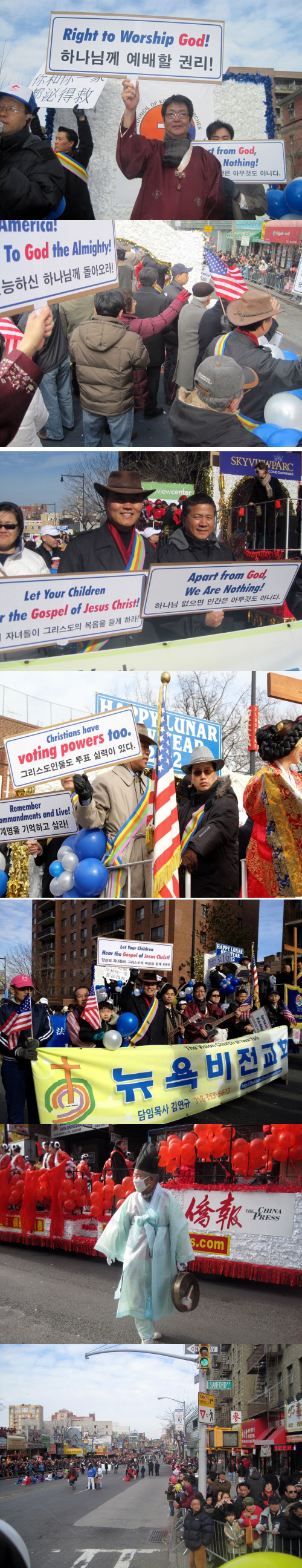 2012년 구정을 맞아 한인커뮤니티와 중국인커뮤니티가 공동주최한 퍼레이드에 뉴욕교협이 올해 이례적으로 꽃차를 준비해 한인교회들을 알리는 한편, 공립학교 예배처 사용문제에 대해서도 한인들의 관심을 촉구했다.