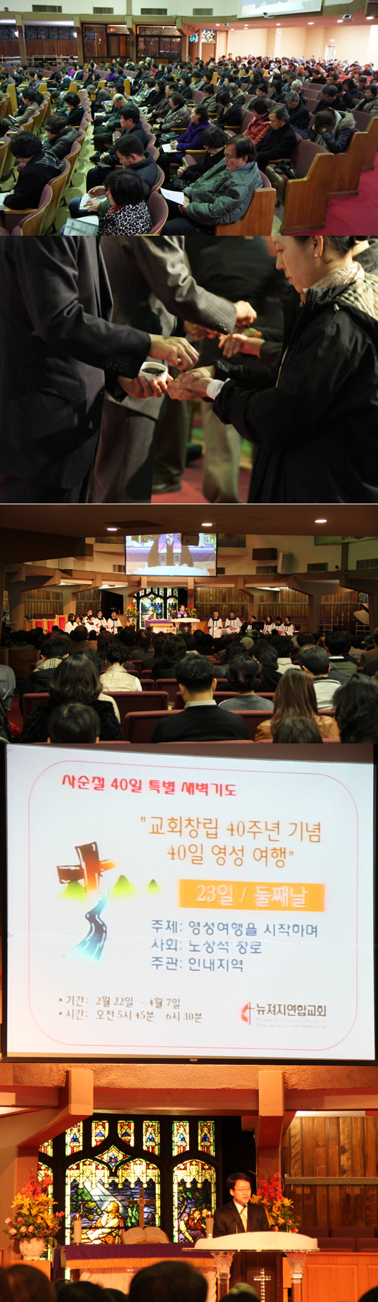 뉴저지연합교회는 22일 수요예배에서 재의 수요일을 맞아 ‘40일 영성여행’을 시작하며 성찬식을 가졌으며 13명의 중창단의 특별찬양으로 고난의 의미를 묵상했다.