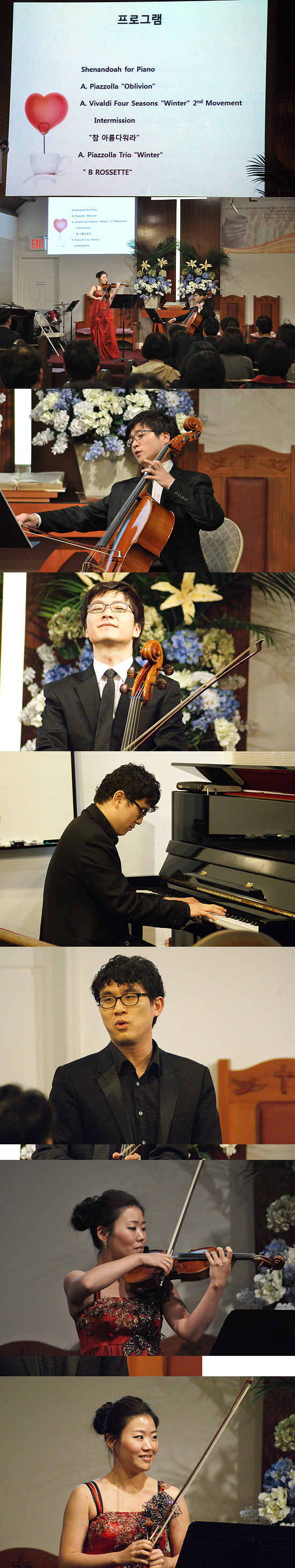 이날 찬양예배에서 바이올리니스트 김정연 씨를 비롯한 뉴욕 클래시컬 심포니 오케스트라 단원들은 피아노 독주, 찬송과 클래식 등 다양한 장르의 연주를 선보이며 감동을 선사했다. 연주된 곡은 shenandoah for Piano, A. Piazzolla "Oblivion", A. Vivaldi Four Seasons "Winter" 2nd Movement, Intermission, "참 아름다워라", A. Piazzolla Trio "Winter", "B ROSSETTE" 등이다.