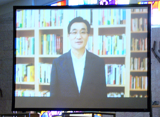 ▲온누리교회 이재훈 목사가 영상축하 메시지를 보내왔다.