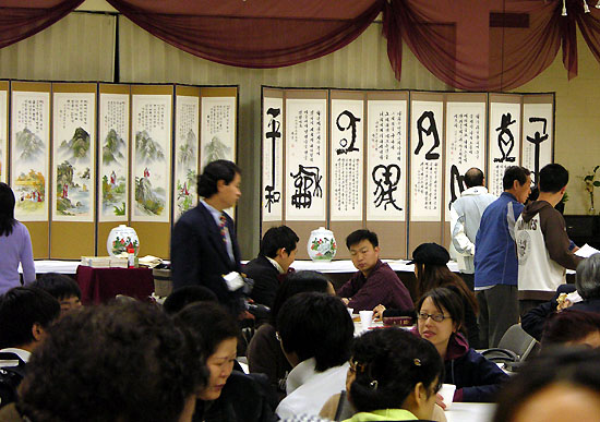 퀸즈장로교회(담임 장영춘 목사) 친교관에서 미주 크리스찬 신문사 후원을 위한 '한밀 정문철 목사 성서 작품전(서예, 도자기)'이 열리고 있다.