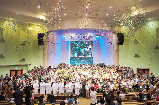 | ▲700여 명이 세례를 받았던 세계로 교회 전반기 세례식 장면ⓒ세계로 교회 |