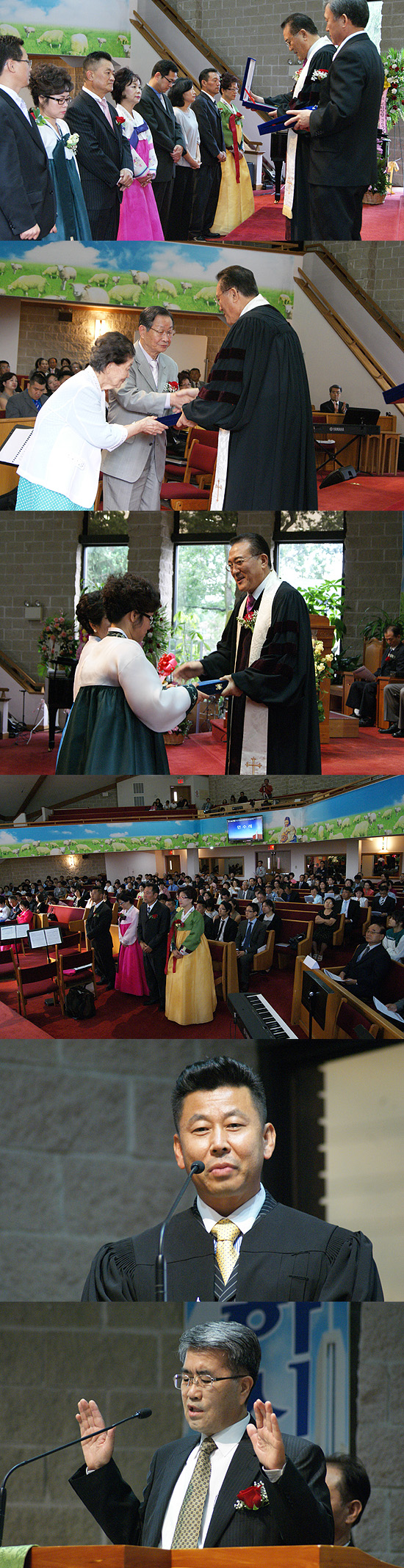 이어 권면에 나선 이의철 목사는 “오늘의 축하는 개인의 축하보다는 뉴욕성결교회가 받아야 할 축하다. 이런 귀한 자리에서 우리 교회가 무엇을 해야하는가에 대해 몇 가지 이야기하고자 한다. 우리는 먼저 순종해야 한다. 교회의 리더십에 순종해야 한다. 장로를 세운 뒤에는 순종하라고 성경에 나온다. 순종할 때 하나님께서 역사해 주신다”며 “또 리더를 세운 교회는 그들을 위해 기도해야 한다. 목사, 장로, 오늘 임직받은 분들을 위해 기도해야 한다. 비판하는 우리가 아니라 뒤에서 기도해주는 우리가 되면 그들이 교회를 크게 부흥시키는 주역들이 될 줄 믿는다”고 임직자를 위한 기도를 요청했다.