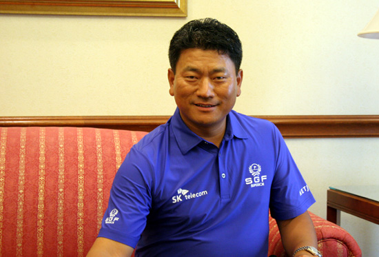| ▲최 경주 선수는 골프를 할 때는 웃는 모습을 잘 볼 수 없다. 그것은 오로지 골프에 무서운 집중을 하고 있어서다. 그러나 골프채를 놓은 곳에서는 이웃집 아저씨처럼 항상 웃음으로 사람들을 따뜻하게 맞이 한다.ⓒ김브라이언 기자 |