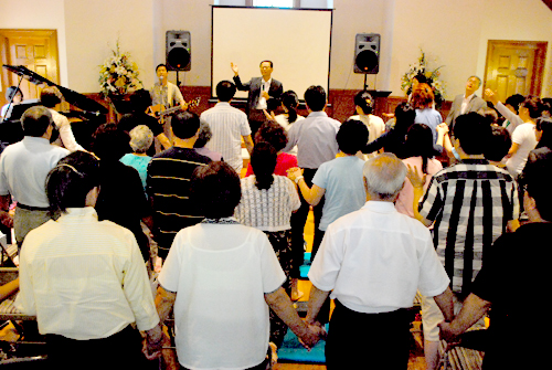 먼저 도착한 찬양팀은 악기를 조율하고 화음을 맞추며 예배와 모임을 준비하는데 분주했다. 집회장소는 이미 찬양팀의 뜨거운 찬양 소리와 성도들의 기도소리가 어우러져 그 누구라도 어색함 없이 마음을 열기에 부족함이 없었다.
