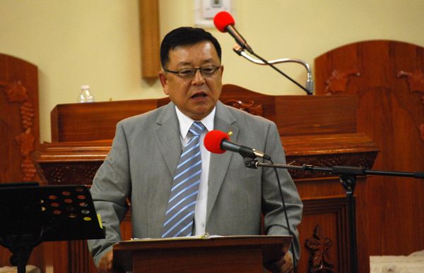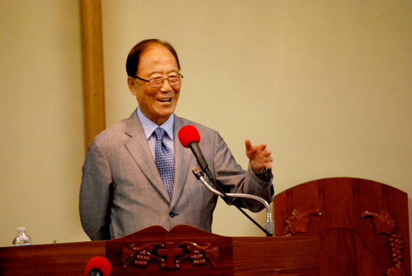| ▲오대기 장로가 신앙 간증을 하고 있다. |