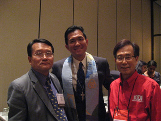 | ▲미국장로교 신임 총회장(중)과 한인목회총무 김선배 목사(우), NCKPC 총회장 임형태 목사(좌) | |