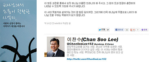 | ▲이찬수 목사의 해당 트위터. |