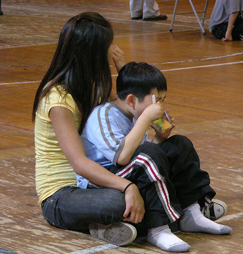 ▲자원봉사자들은 장애우 한 명을 전담해 돌본다.