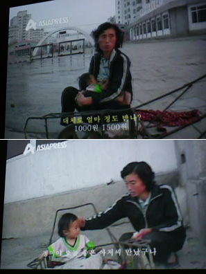 특히 ‘North Korea VJ’는 2005년부터 2011년까지를 찍은 영상 안에는 기차 안에서 보안원과 벌어지는 싸움부터 비쩍 마른 어머니가 돌이 지나도 영양 부족으로 걷지 못하는 아기에게 젖을 물리는 모습, 흙바닥에 담배 몇 갑을 펼쳐놓고 파는 노인, 단속원에게 항의하며 목소리를 높이는 여성들, 부모는 죽고 떠돌이 생활을 하는 꽃제비, 혹한 속에도 야외에서 잠을 청하는 10대 어린이들까지 북한의 열악한 상황을 여실히 드러내고 있었다.