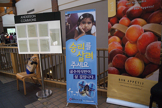 | ▲대회 현장에서 최승리 양을 위한 캠페인 진행을 알리고 있는 홍보간판 | |