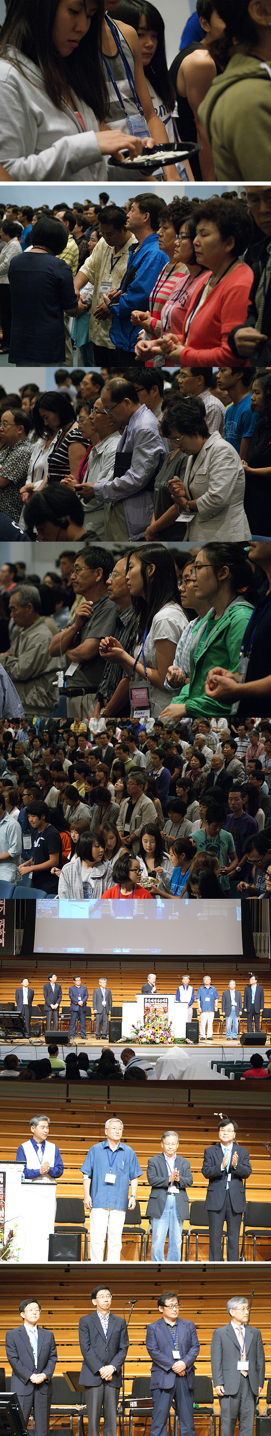예배 때 진행된 연합성찬식은 1세와 2세가 모두 떡과 포도주를 나누며 예수님의 희생의 의미를 마음에 되새기고 피묻은 복음을 땅 끝까지 전할 것을 다짐했다. 참석자들은 성찬식에서 떡과 잔을 받아들고 깊이 기도했으며 눈물을 흘리며 기도하는 소리가 곳곳에서 들렸다.