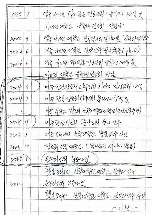 이상인 목사가 작성한 자필 이력서. 미국에서 사역을 시작한지 2개월 만에 목사고시에 합격했고, 1년도 안 돼 안수를 받았다는 내용이 들어가 있다.