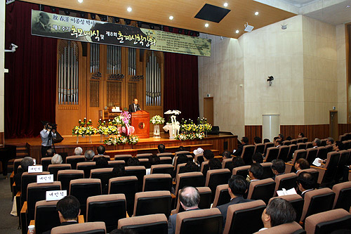 ▲故 이종성 박사 1주기 추모예식 및 제회 춘계신학강좌가 서울 장신대 세계교회협력센터에서 열리고 있다. ⓒ김진영 기자 |