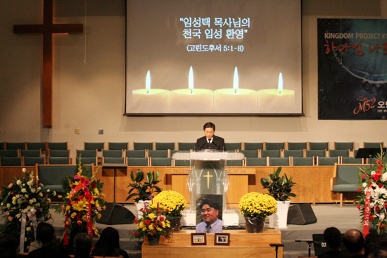 <故 임성택 목사의 천국 환송예배가 지난 11일 오후 5시, 타코마제일침례교회(담임 최성은 목사)에서 거행됐다. 이날 예배는 시애틀 한인목사회와 시애틀 기독교연합회에서 협력한 가운데 서북미침례교협의회장으로 치러졌으며, 시애틀, 훼드럴웨이, 타코마, 올림피아 등 서북미 지역 400여 명의 목회자들과 성도들이 참석해 고인의 천국 길을 함께 했다.