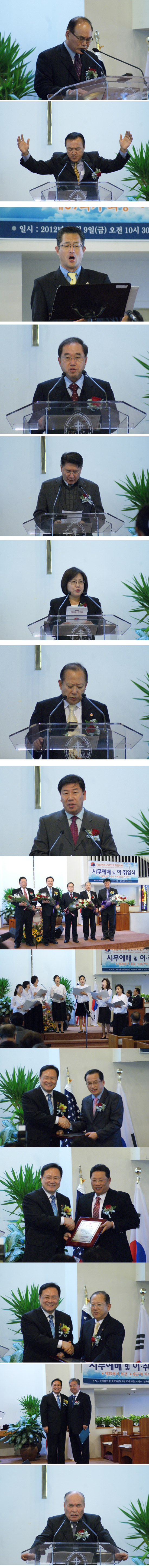 앞으로 동포사회를 위해 힘써 주실 것을 믿고 축하를 드린다. 양승호 전 회장의 박력있는 모습의 통합의 리더십을 잘 봤다. 지금 미국은 청교도 정신으로 출발했지만 그것이 퇴색되고 있다. 동포 사회도 그런 모습을 보이고 있다. 점점 어려운 경제 속에서 또 환란 속에서 힘들어하고 있다. 그들을 더욱 감싸고 돌보는 교협이 되시기 바란다. 하나님의 말씀 없이는 이렇게 외지에서 섬길 수 없다. 점점 말씀을 잃어버리는 모습을 보면서 안타까움을 금할 수 없다. 교협의 단합을 위해서 힘을 쓰시겠지만 동포사회를 위해 조금 더 참여해주시기를 바란다. 39회기에 대한 기대가 크다.