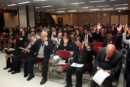 앞서 ‘하나님의 특별하신 도움’을 제목으로 설교한 엄신형 목사는 “하나님은 우리 한 사람 한 사람을 도우시지만, 또한 이 나라와 민족도 하나님께서 도우신다”며 “그러니 환란을 당하고 어려움에 처했을 때 낙심하거나 원망하지 말고 하나님께 구해야 한다. 그럼 하나님께서 그 기도를 들으시고 확실하게 우리를 도와주실 것”이라고 말했다.