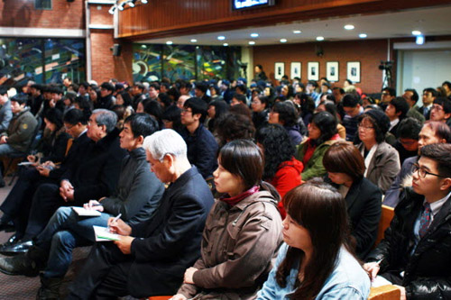 | ▲성도들이 대담을 듣고 있다. ⓒ문화원 제공 |