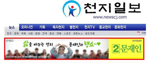 더구나 천지일보 홈페이지에는 문재인 후보의 선거 광고배너도 노출시키고 있었던 것으로 알려졌다.