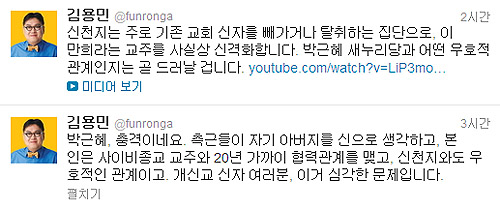 | ▲김용민씨의 주장이 담긴 트위터. ⓒ인터넷 캡처 |