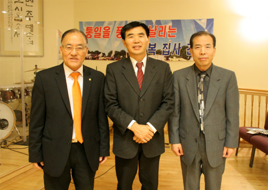 | ▲왼쪽 부터 탈북자들의 아버지로 불리는 윤요한 목사, 이민복 선교사, 고향선교회 최창효 목사ⓒ김브라이언 기자 |