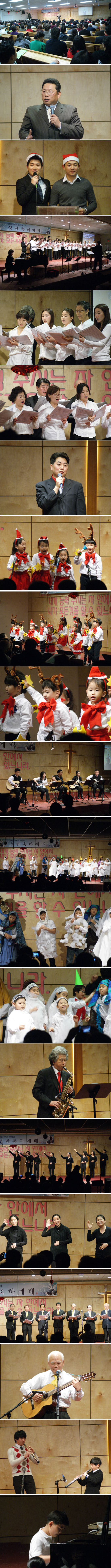 유치부는 ‘반짝 반짝 성탄절’, ‘해피 해피 하하’, ‘탄일종’ 등의 캐롤을 앙증맞은 율동으로 표현하면서 참석한 성도들을 미소짓게 했다. 중고등부는 ‘천사들의 노래가’를 힘찬 워십댄스로 소화하면서 큰 호응을 이끌어냈다. 여선교회의 아름다운 수화찬양과 순복음연합교회 장로들이 총출동한 장로회 합창도 큰 박수를 받았다.