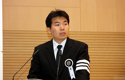 | ▲장남 황진훈 씨가 조사를 전하고 있다. ⓒ신태진 기자 |