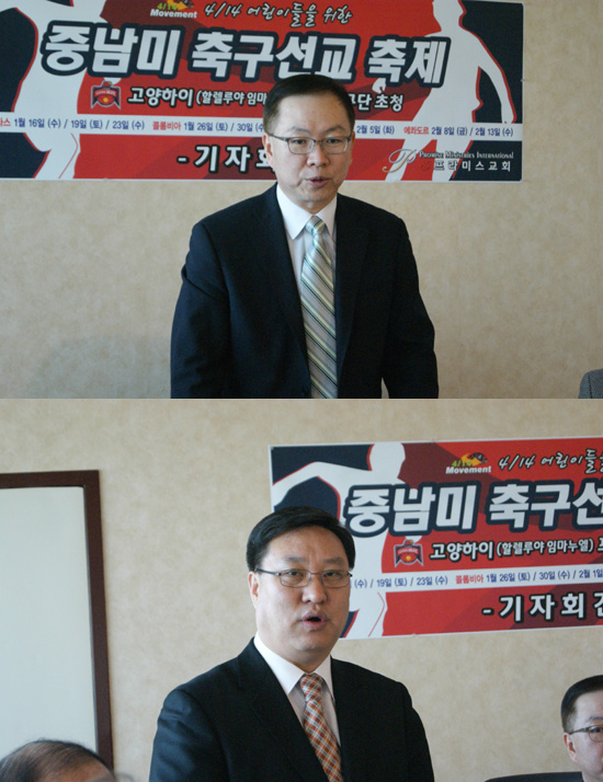 프라미스교회는 8일 오전11시 프라미스교회 회의실에서 기자회견을 열고 금년 1월 중순부터 2월 중순까지 약 4주 동안 진행되는 중남미 축구선교를 위해 함께 기도해줄 것을 요청했다.