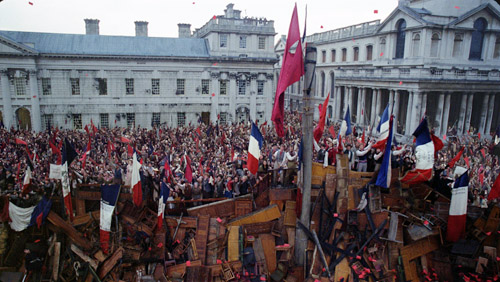 | ▲혁명의 깃발 아래 다함께 바리케이트에 모여 혁명을 노래하는 마지막 장면. 용서받은 우리 모두가 함께 하나되어 찬송할 날을 꿈꾸며. |