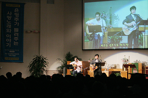 | ▲70년대를 풍미했던 가수 윤형주 장로의 간증집회가 23일 와싱톤중앙장로교회 열렸다. ⓒ 이화영 기자 | |