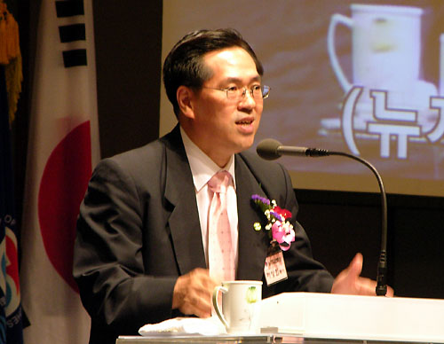 | ▲뉴저지교회협의회 회장 허상회 목사가 축사를 전하고 있다. | |