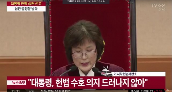[속보] 헌법재판소, 박근혜 대통령 파면 선고